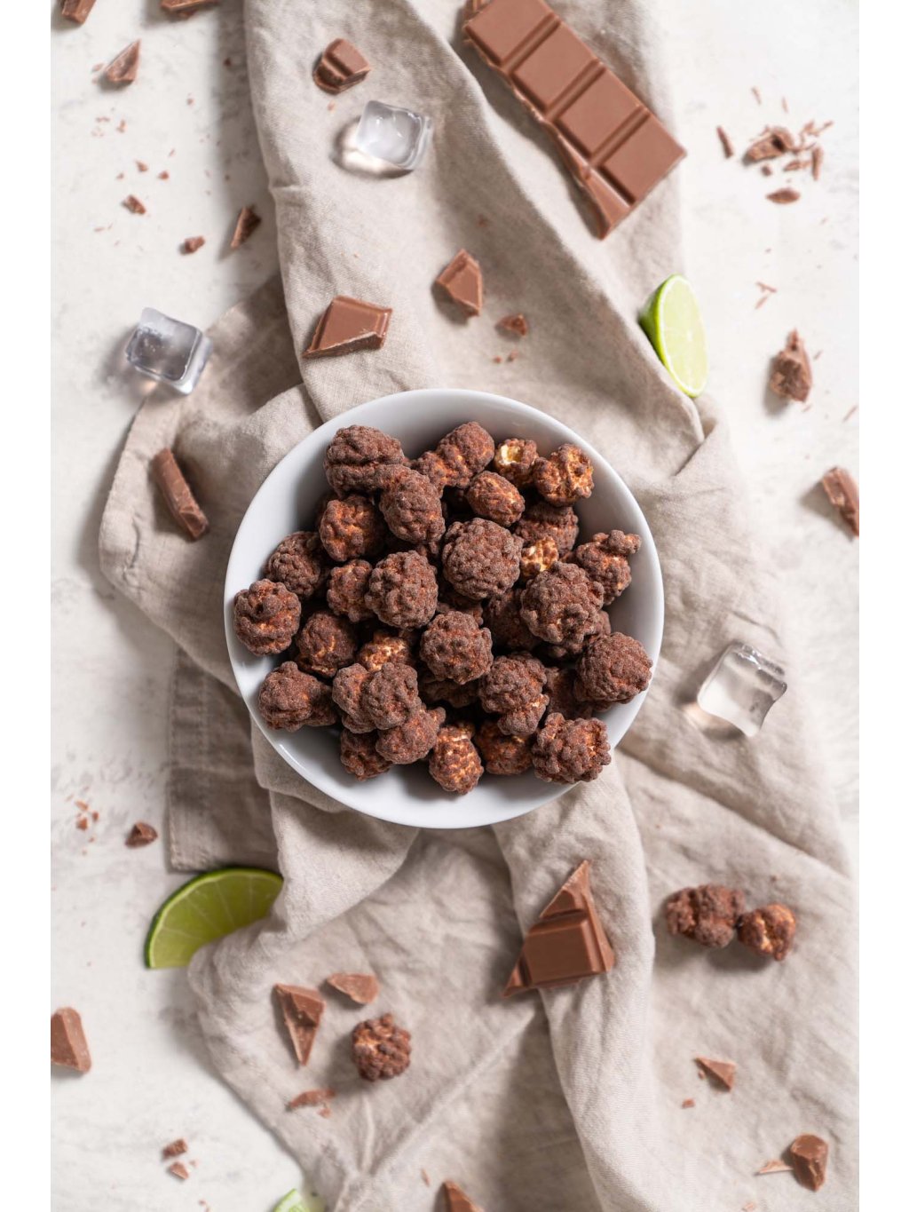- Složení: Mléčná čokoláda se smetanou 69,1 % (cukr, kakaové máslo, sušené mléko plnotučné, kakaová hmota, sušená smetana 7,5 %, emulgátor: sojový lecitin, přírodní vanilkový extrakt), kukuřice pukancová 30 % (kukuřice pukancová (36 %), cukr, glukózový sirup, řepkový olej, kyselina citronová, slunečnicový lecitin), přírodní aroma 0,9 % (cola, limeta, rum). Může obsahovat stopy skořápkových plodů, sóji a arašídů